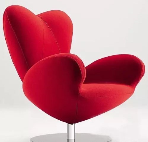 两颗心的组合,椅背是完整的一颗,而把两个扶手合二为一之后又是一颗。